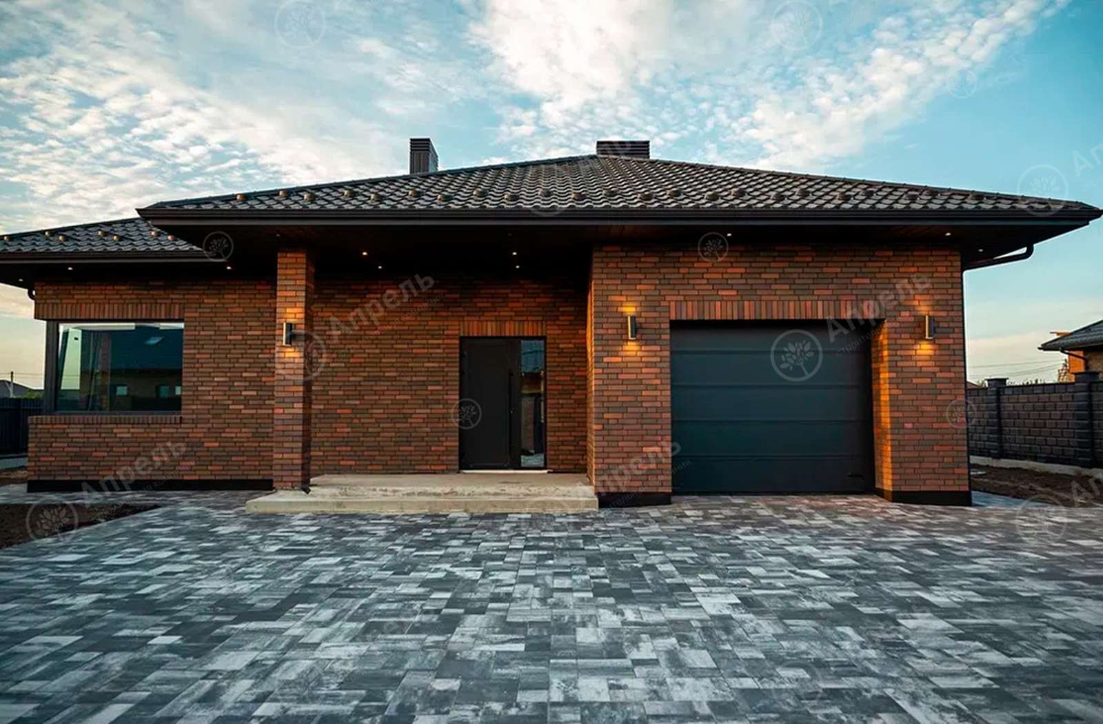 Фасад: ригельный кирпич + планкен