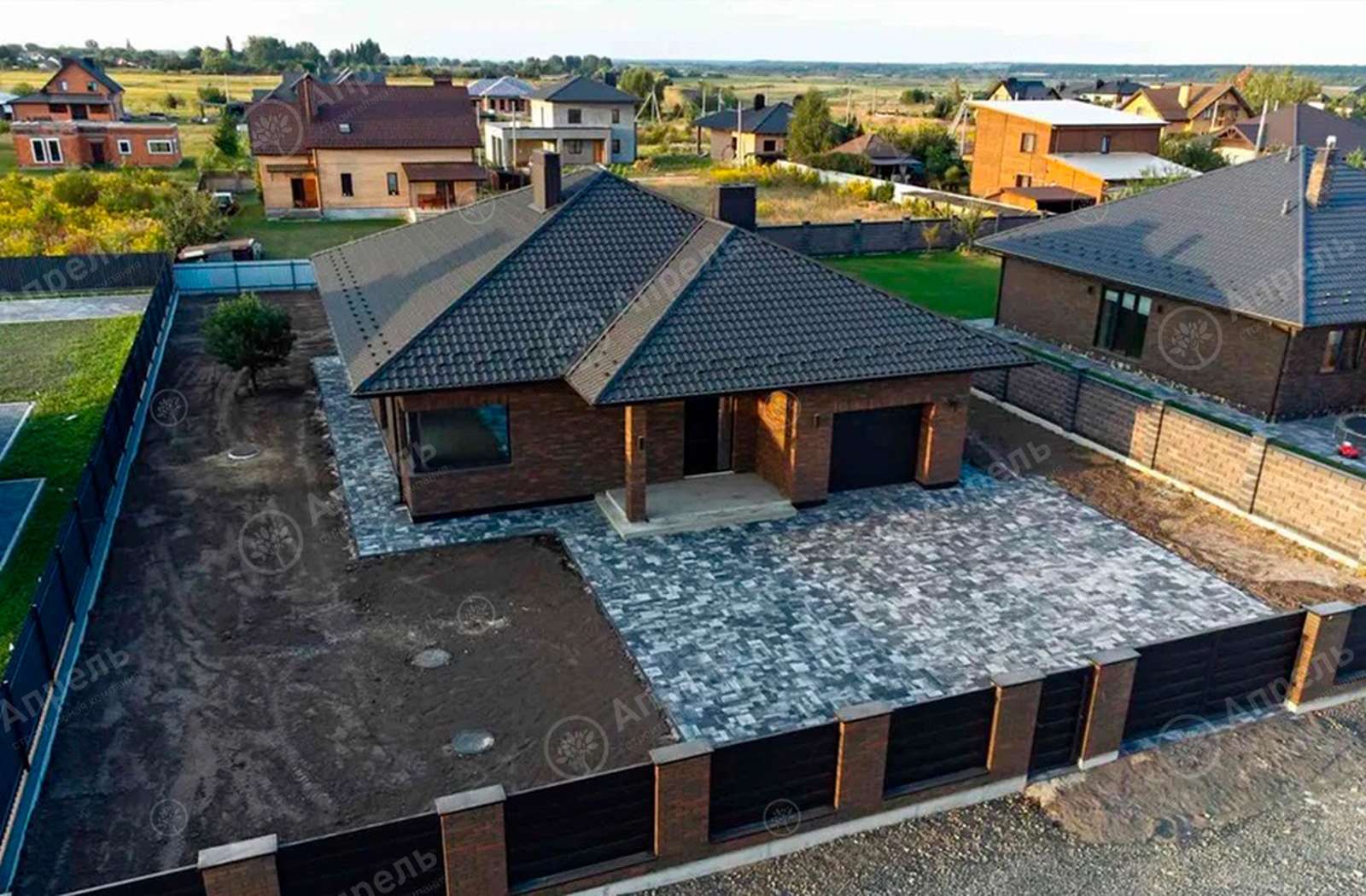 В этом доме 4 спальных комнаты, кухня-гостиная и 3 санузла. Капитальные стены из керамического блока толщиной 380 мм + 100 мм утеплитель. Фасада дома выполнен из кирпича марки 250 в стиле баварская кладка. Терраса 25 м2 с выходом на задний двор.